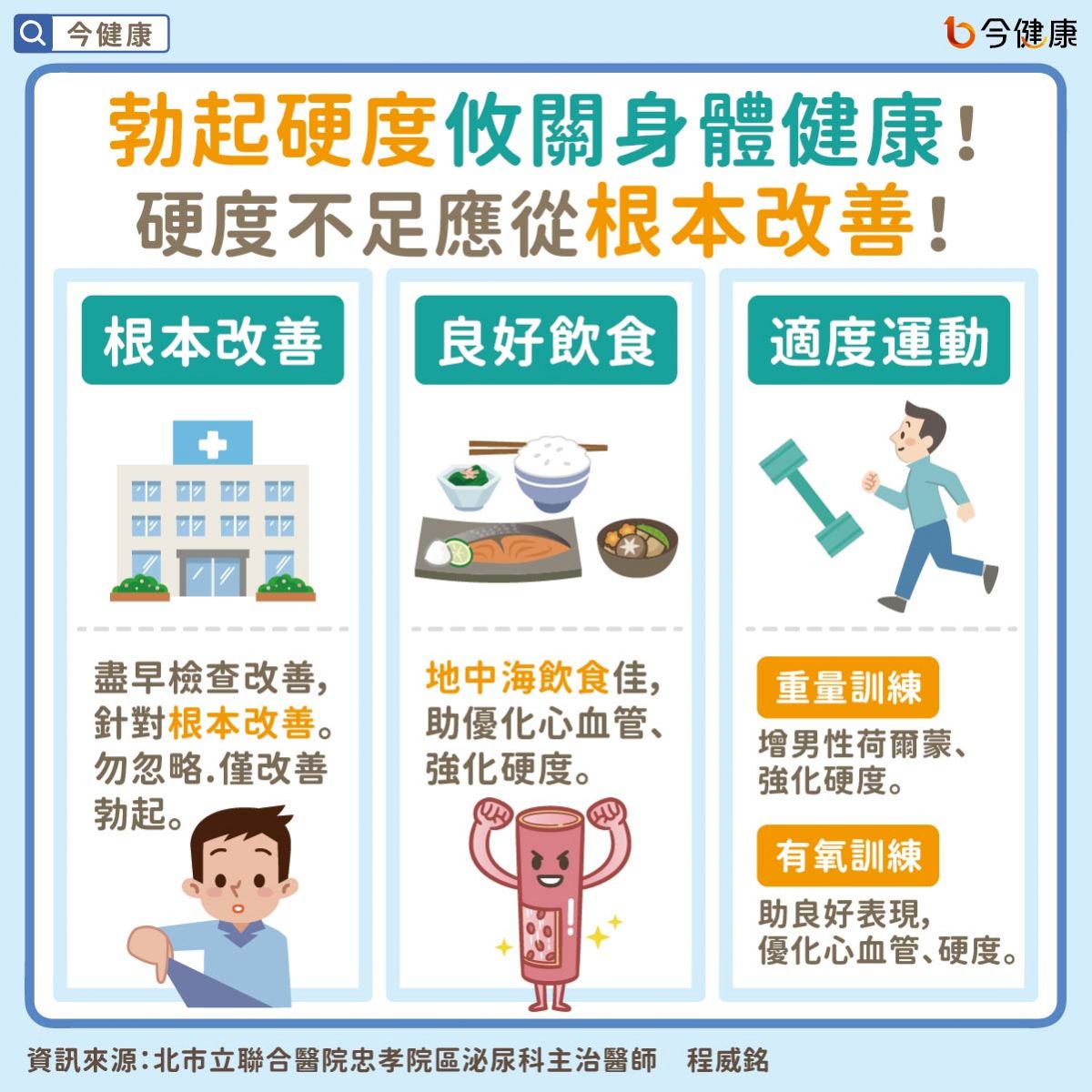 程威銘醫師表示,勃起的硬度和身體健康有很大的關聯,提醒民眾若有勃起功能障礙情況,應盡早前往作相關檢查,找出背後的原因,別視而不見,或是單針對勃起功能進行改善。